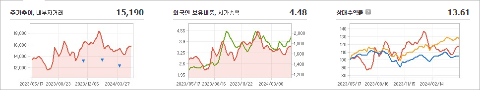 팅크웨어의 현재 주가는 15,190원이며, 전일 대비로 -700원 하락한 모습을 보여주고 있습니다. 주주현황을 살펴보면 유비벨록스(외 2인)이 지분의 40.41%를 소유하고 있습니다. 팅크웨어는 자동차 부품 기업으로, 현재 주가는 15,190원입니다. 시가 총액은 1692억 원이며, 발행 주식수는 11,109,424주입니다. 외국인 보유 비중은 4.48%이며, 장중 거래량은 211,377주를 기록했습니다. 또한, 매출액은 4,206억 원을 달성했습니다.