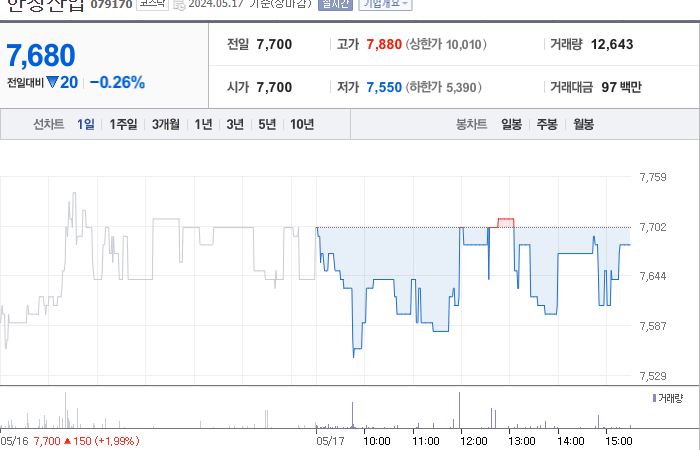 한창산업의 현재 주가는 7,680원이며 전일 대비 -20원으로 하락하고 있습니다. 주주 현황을 살펴보면, 강상균(외 13인)이 지분의 52.57%를 소유하고 있습니다. 한창산업은 화학 기업으로, 현재 주가는 7,680원입니다. 시가 총액은 399억 원이며 발행 주식수는 5,200,000주입니다. 외국인 보유 비중은 5.30%이며, 장중 거래량은 12,654주를 기록했습니다. 또한, 매출액은 670억 원으로 달성되었습니다.