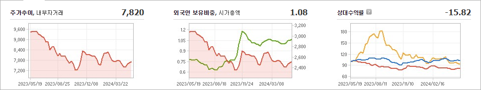 해성산업의 현재 주가는 7,820원이며 전일 대비 -4.40원 하락했습니다. 주주현황을 살펴보면 단재완(외 7인)이 지분의 53.68%를 소유하고 있습니다. 종이 및 목재 기업인 해성산업의 시가 총액은 2,546억 원이며 발행 주식수는 32,556,857주입니다. 외국인 보유 비중은 1.08%이며 장중 거래량은 37,630주를 기록했습니다. 또한 매출액은 23,084억 원을 달성했습니다.